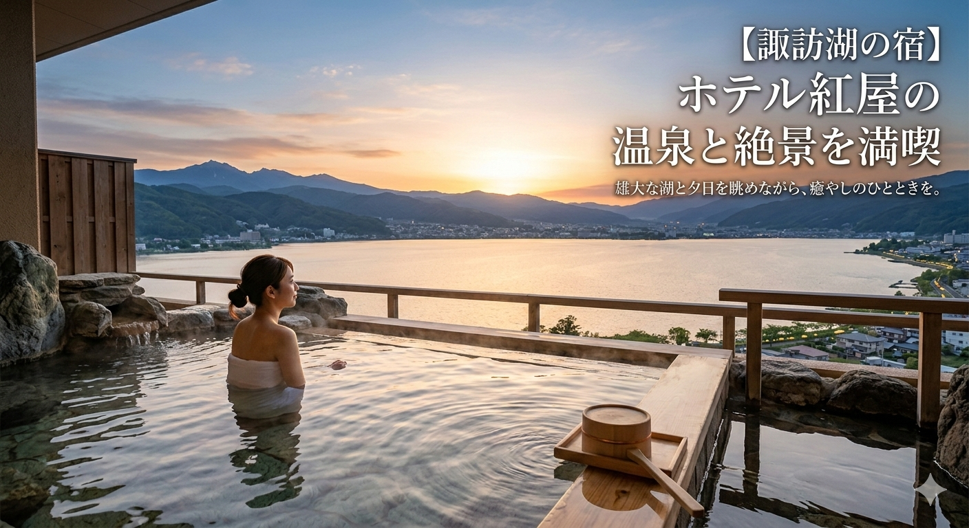 諏訪湖のほとりに建つホテル紅屋は、絶景と温泉を楽しめる人気宿です。